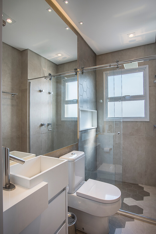Os banheiros têm paginações especiais e pedras esculpidas.