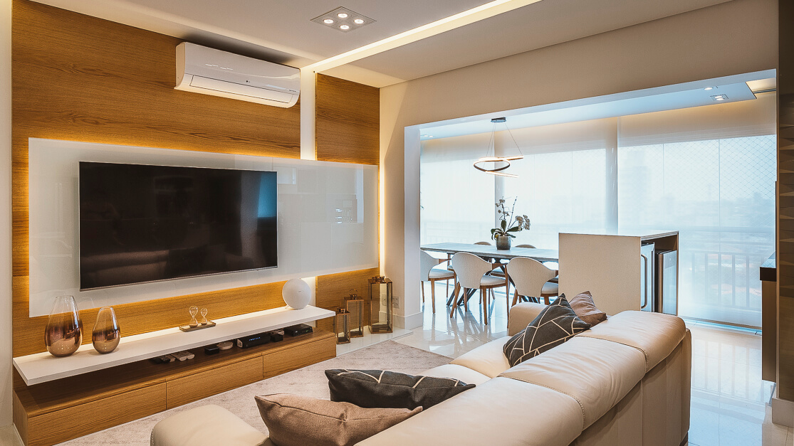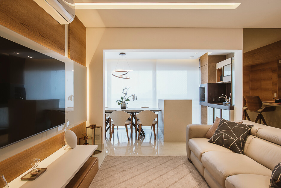 Neste projeto a madeira natural é ponto presente trazendo sofisticação ao ambiente.