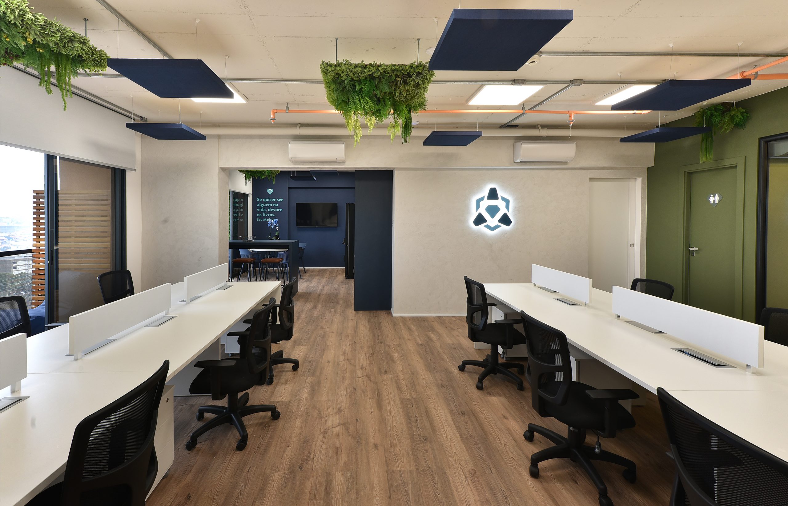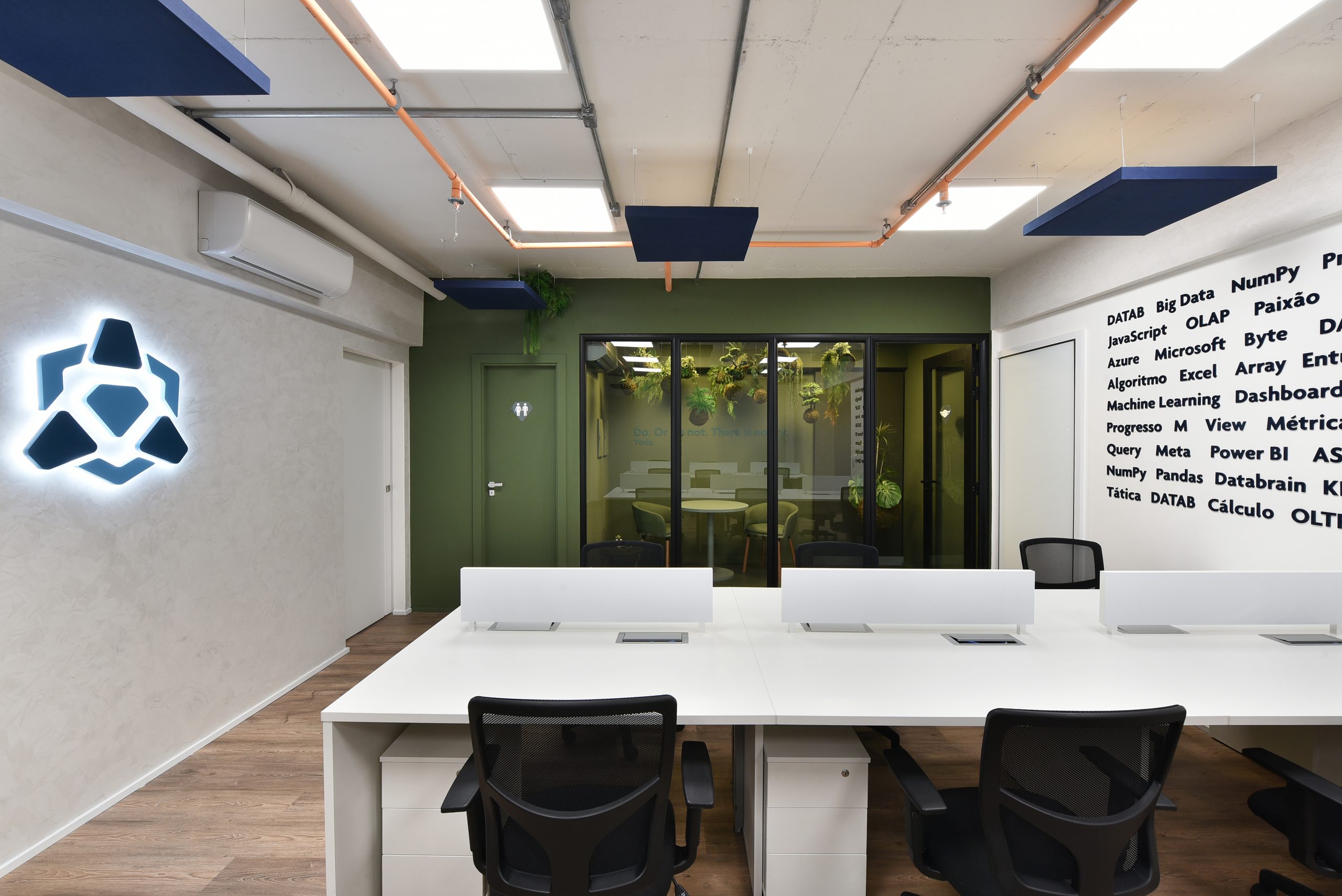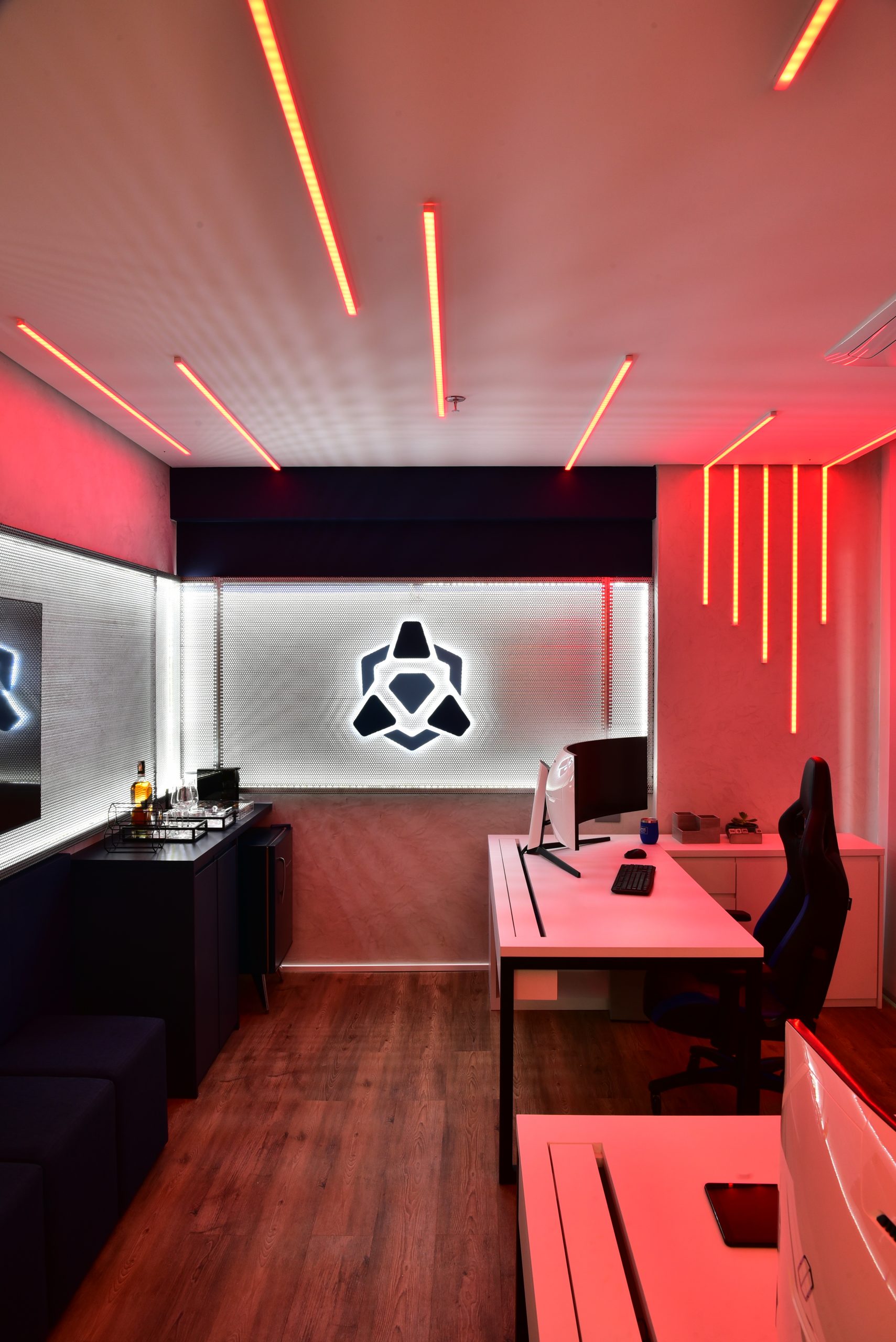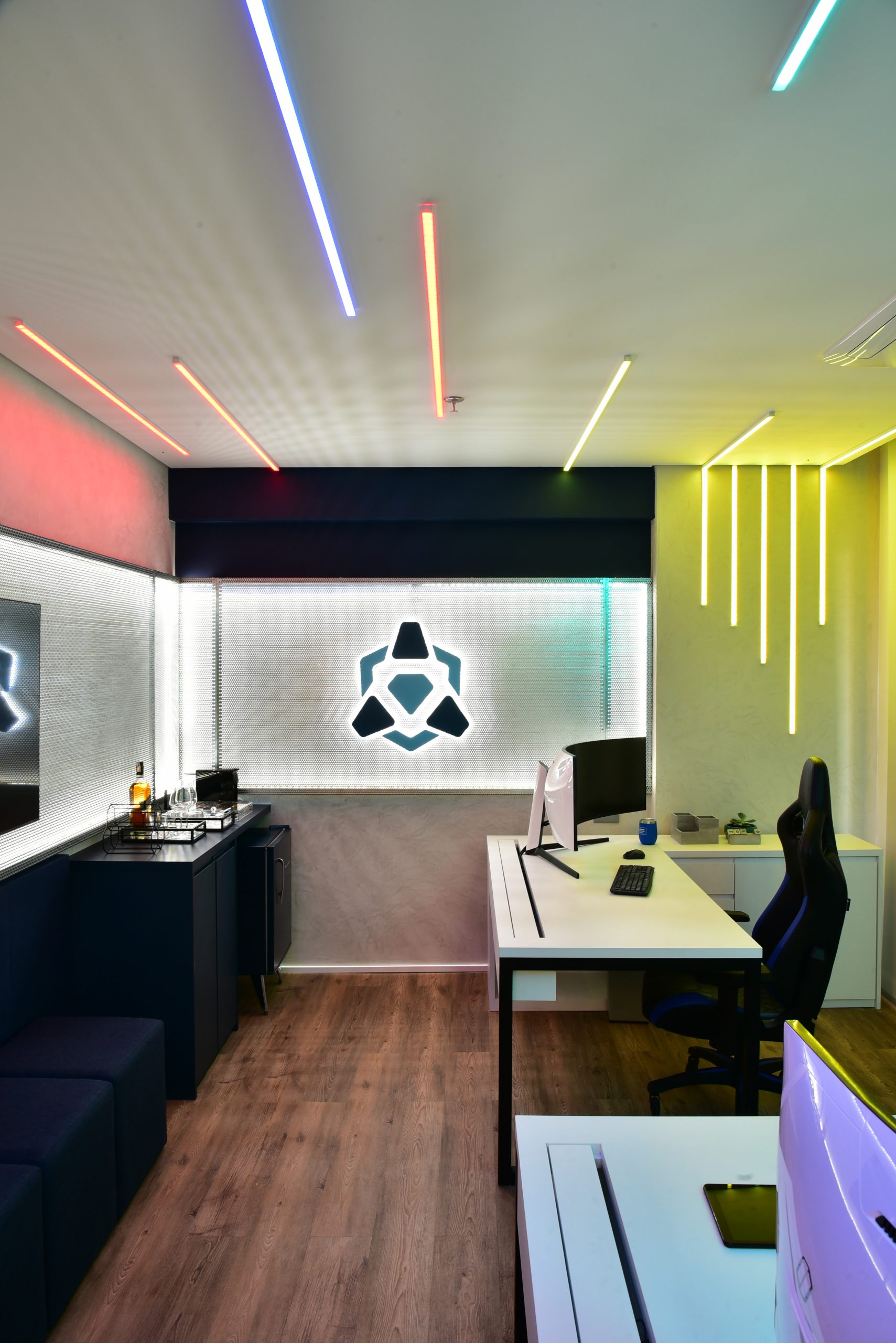 Como o pedido dos clientes foi inovação, os espaços são impactantes e realmente exclusivos. Uma mistura de texturas, iluminação e cores que criaram um espaço que representa fielmente o crescimento e cultura da empresa, onde encontramos tecnologia, alta performance, pessoas acreditando em pessoas: Um escritório inovador e vivo.